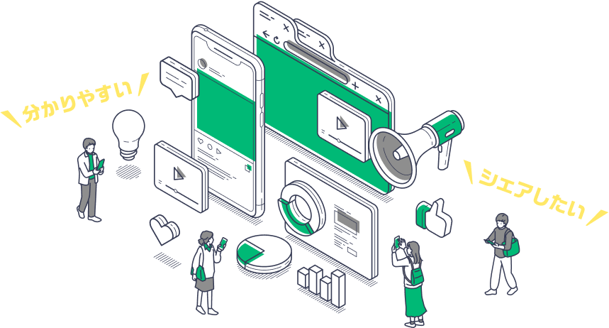 まとめて対応動画だけでなく、SNSやWEB媒体、漫画やパンフレットなど、